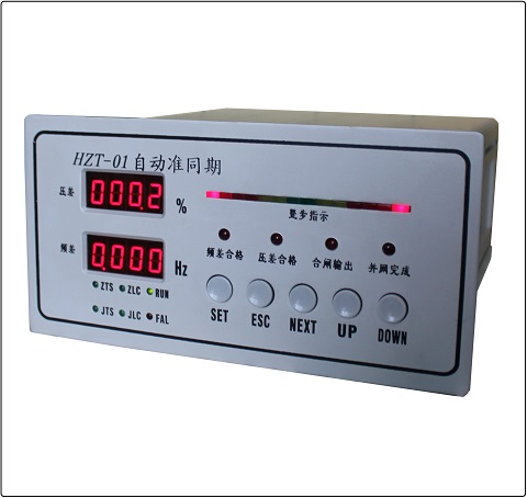 有自(zì)動轉速和電壓調節控制的場合,HZT-01裝置在進行準同期過程中能有效的進行調頻和調壓控制。在裝置面闆上電壓差、頻率差數值,可(kě)直觀的觀察同期并網的條件(jiàn)是否成立,以便盡快(kuài)促成準同期條件(jiàn)到來(lái)。由于采用成熟的角度預測技術(shù),能有效準确的捕捉第一次出現的并網時機(jī)。